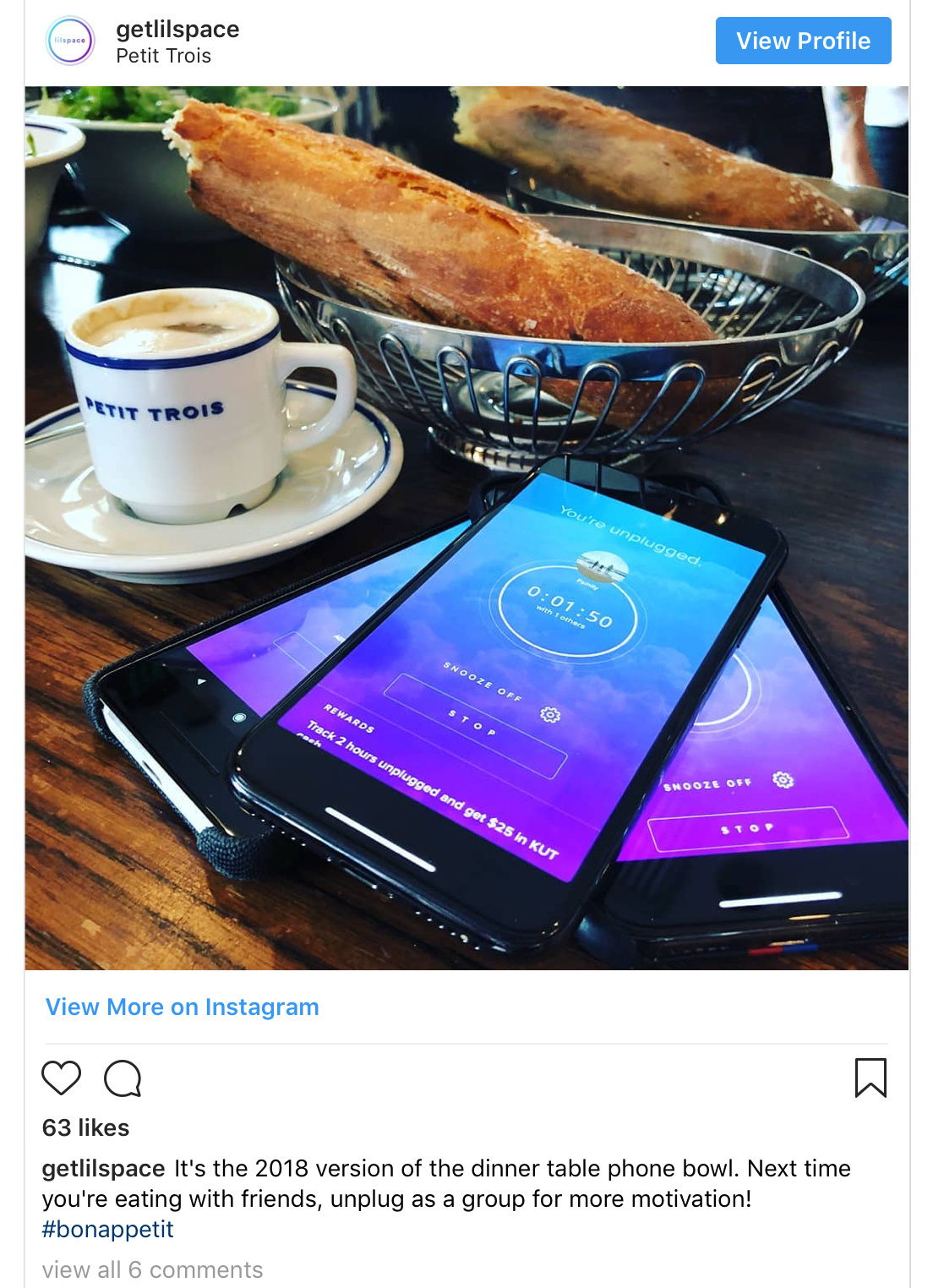 另一款应用, Lilspace通过给用户奖励,鼓励他们减少手机使用。每次你打开应用,它都呼吁你为公益事业做贡献,比如,只要你达成目标,为无家可归者提供住宿的公益目标就会更进一步。