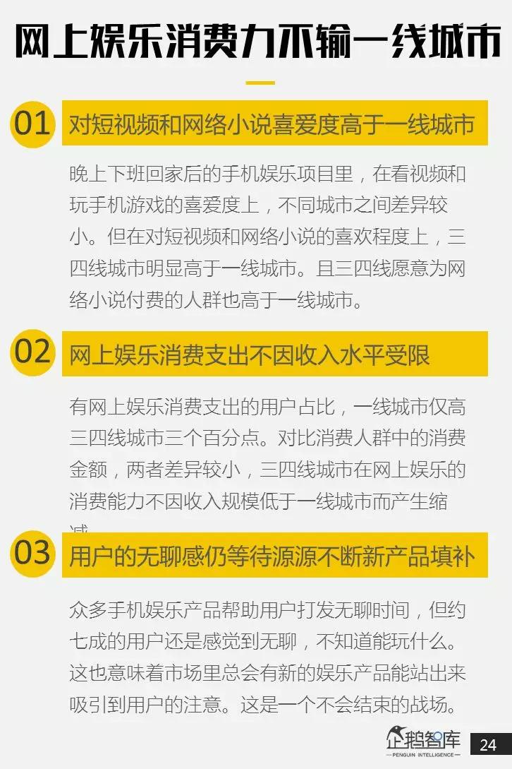 8.用户对娱乐的需求永远待填补。约70%的三四五线用户认为,虽然手机里好玩的东西还行,但有时还是会觉得无聊,不知道还能做什么。