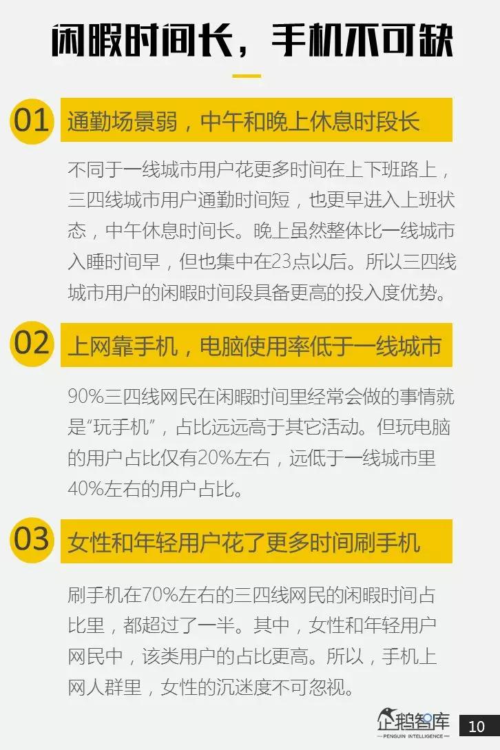 对比我们熟悉的一线城市,三四五线城市网民的生活方式差异,究竟体现在哪些方面?如何更好地满足不同类型城市人群的差异化需求?