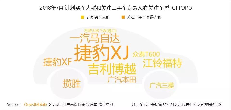 关注二手车交易人群对品牌二手车的关注度非常高,也体现了这部分人群购买二手车的一个需求,即花较少的钱购买更好的品牌产品。