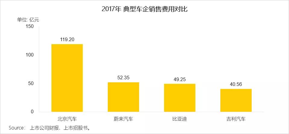 公开财务数据显示,蔚来汽车的销售费用已与吉利、比亚迪等传统车企不相上下,但考虑到产量及销售收入,蔚来汽车的销售费用相对高很多。其差异在于,传统车企采用的是与4S店合作,核心价值在于销售和售后服务。而蔚来汽车自建销售网络,包括NIOHouse(即蔚来中心)和APP,核心价值在于通过移动互联网吸引一部分关注它的用户,培养一批潜在的消费者,整合线上线下价值,作为纽带联结用户和汽车。