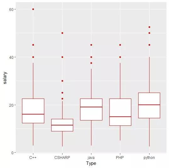 1.Python岗、Java岗、C++岗、PHP岗、C#岗位的平均薪水