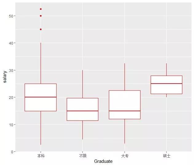 通过硕士、本科、大专、不限四种比较,硕士的总体薪资高于本科。