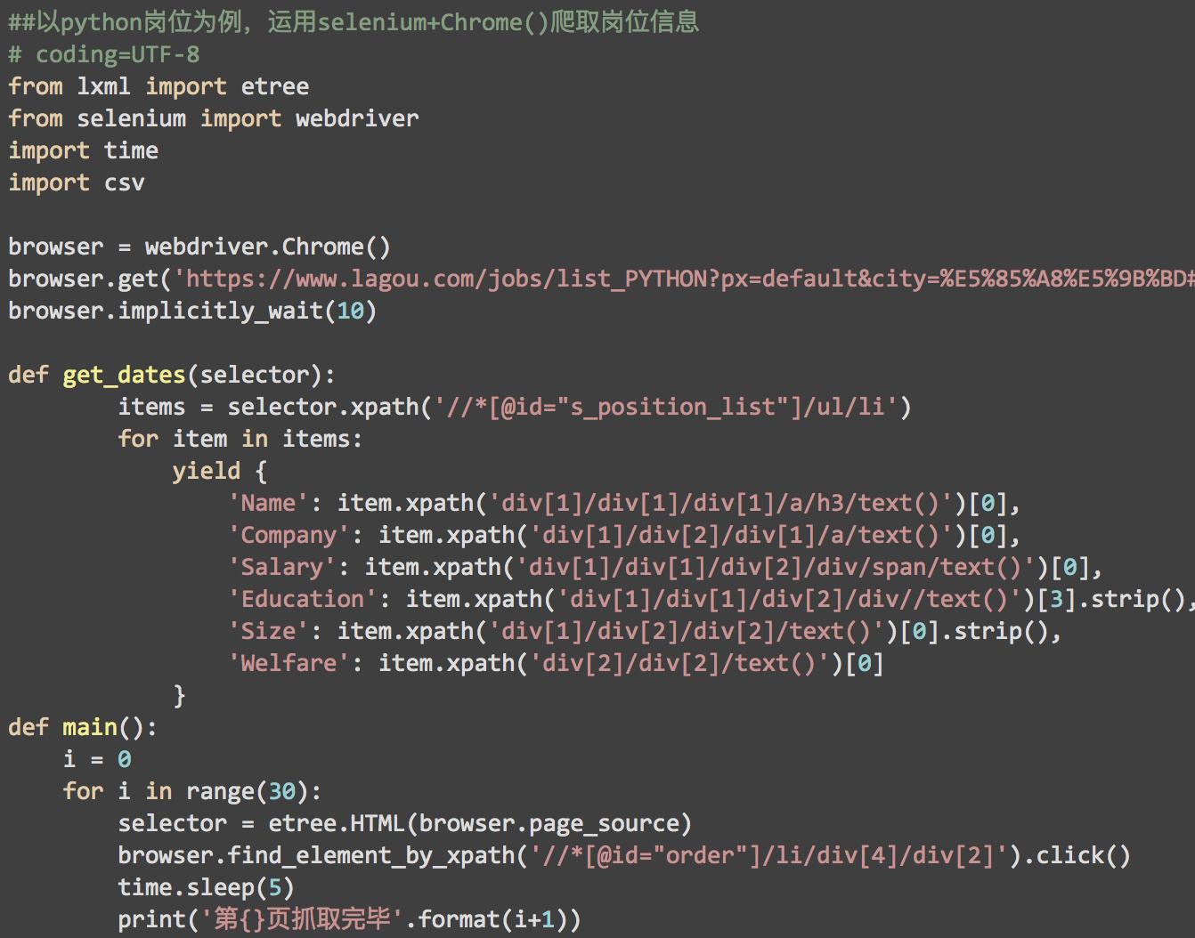 一、爬取拉勾网5岗职位信息--以Python岗为例