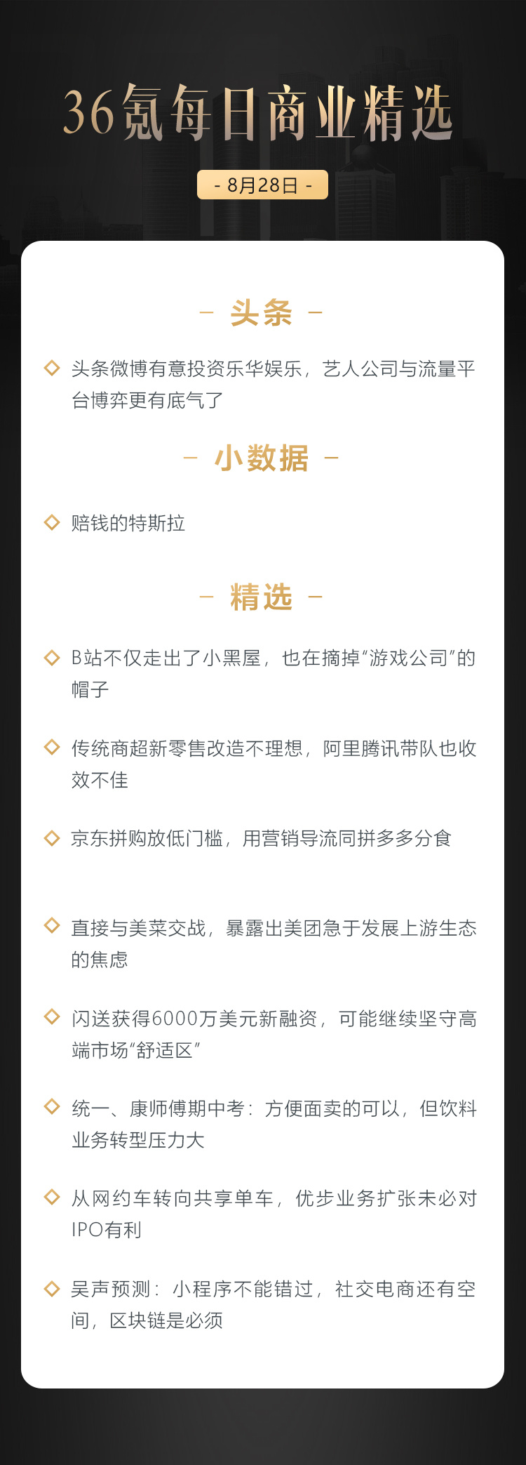 本文来自36氪付费栏目《36氪每日商业精选》——8月28日