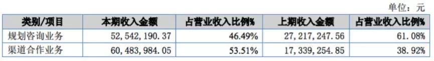 而其中,渠道合作业务2017年营收6048万元,占营业收入的53.61%。财报披露,2017年直营的规划咨询业务与渠道合作业务的占比开始发生变化。为了加速推进全国市场的布局及业务发展,报告期内广泛开展渠道合作,合作机构数量的大幅增长。