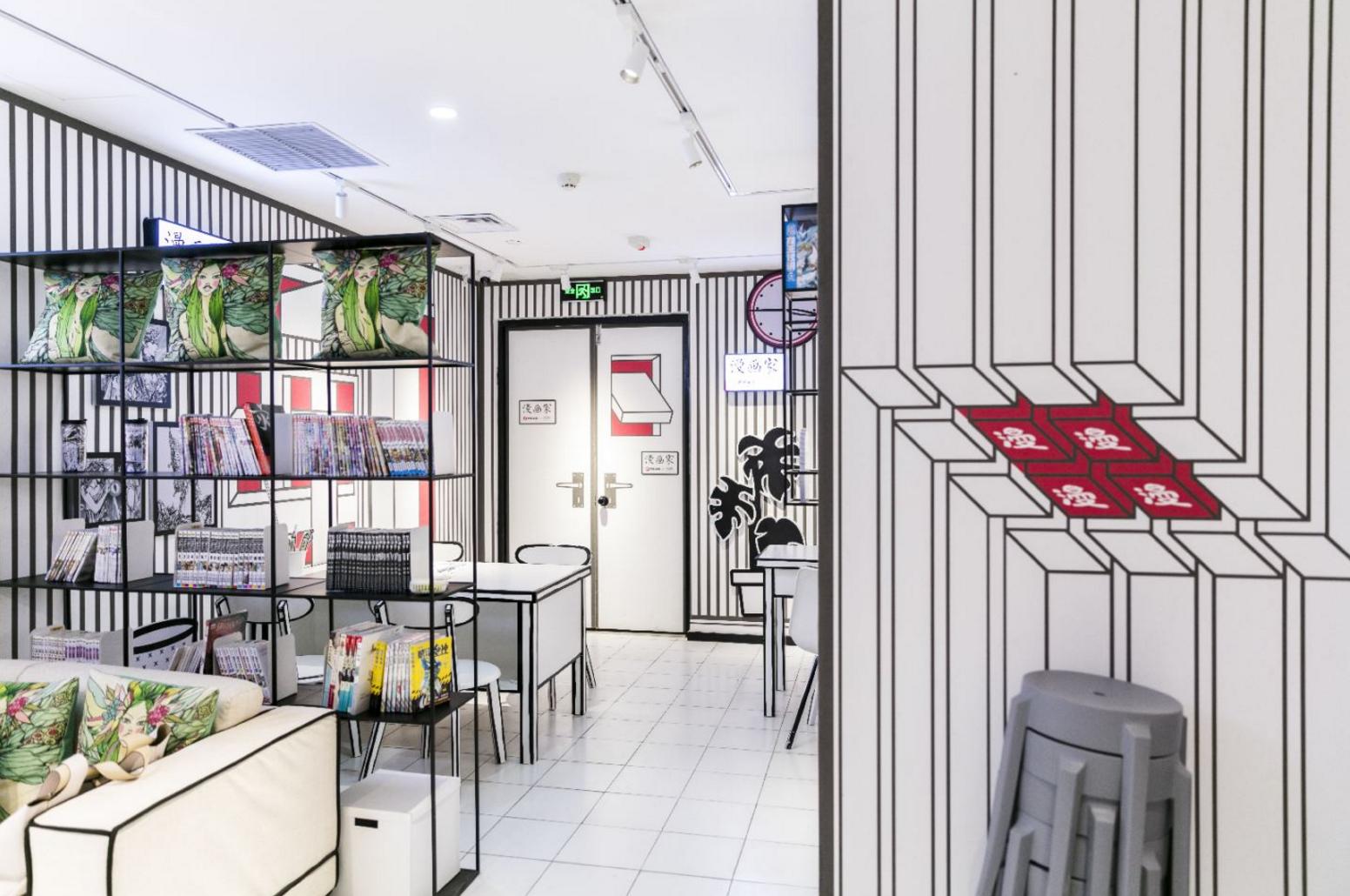 开酒店成了常态之后,这家以游戏为标签的互联网公司最新的切入点是饮品店,但主角不是严选和考拉,而是目前在网易业务线中存在感没那么强的网易漫画。8月28号,网易漫画和网红果饮莓兽在杭州大悦城合开了一家“漫画家”主题店。新店门头左边是网易漫画的看板娘鹿娘,右边是莓兽女王。除了动漫风的店面、玻璃茶几里摆放的手办,在沙发旁还有一面漫画书架,客人可以坐下来,边喝边看。