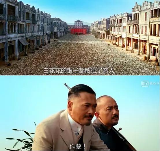 姜文的电影《让子弹飞》,里面表达的欲望是“站着把钱挣了”,影像冲击就是“金子洒满一地”。