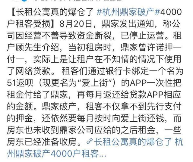 A:这个行业盈利模式单一,回报周期长、利润率低,需要大量资金,用金融产品回笼资金很普遍。目前,整个长租行业是一个不盈利、做现金流的行业。鼎家并不是第一个因长租爆仓的公司,此前爱公寓等长租爆仓事件原因都相似。