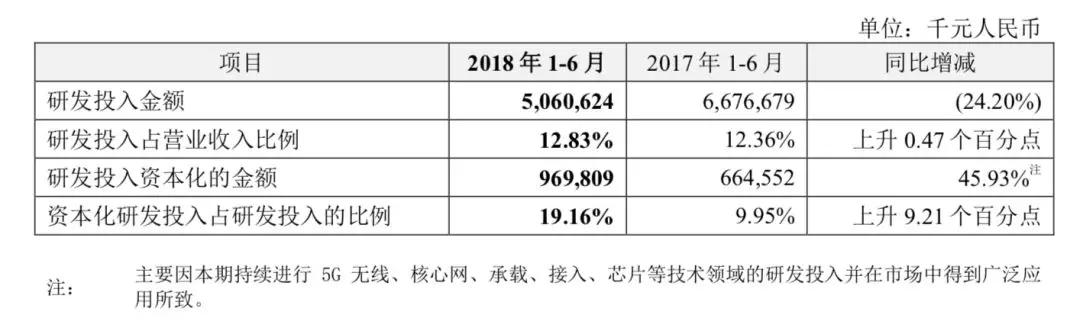 但「深响」(id:deep-echo)发现,中兴在2018年1-6月的研发投入金额不增反降,同比减少了24.2%。这让人不禁疑问,既然已经在核心技术上吃了大亏,为什么还不加紧投入研发?