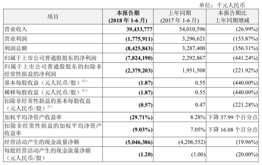 中兴发布2018年半年度财报,净亏损78.24亿元,同比由盈转亏。
