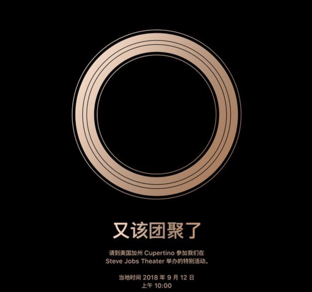 这承继了上一年的邀请函主题——"Let's meet at our place" (中文版是“我们,家里见”)。去年秋季发布会是苹果第一次在Apple Park发布新品,其中就包括10周年力作iPhone X。