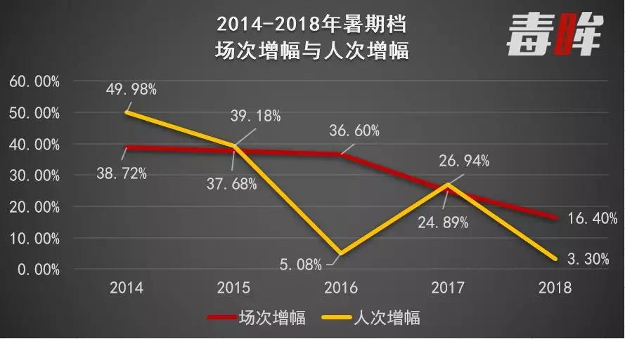 但在毒眸看来,比票房将创下新纪录更重要的数字,是观影人次与排片场次的变化。今年暑期档超过173亿票房背后,票房增幅仅有6%;但是总场次超过2810万场,相较去年同比增幅超过16%,而观影人次4.9亿次,仅比去年增加3%——