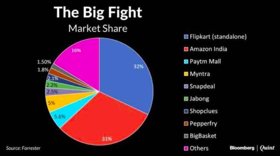 而今年初的市场格局是这样的(Myntra是Flipkart的服装电商子公司):