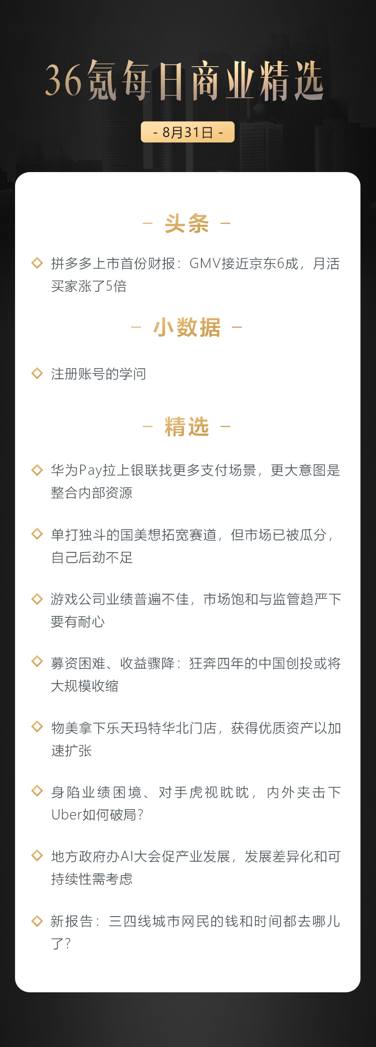 本文来自36氪付费栏目《36氪每日商业精选》——8月31日