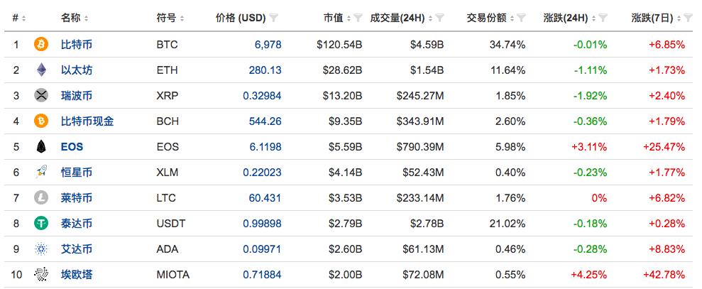 以上币市行情数据采集时间为 2018 年 8 月 31 日 17 时。