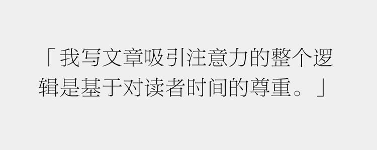 因为我不使用传统的营销手段,我总是把读者放在第一位。我在网上写文章吸引注意力的整个逻辑是基于对读者时间的尊重——在这点上,大多数公司和行业里的专业人士要么不考虑,要么不知道如何有效地执行。