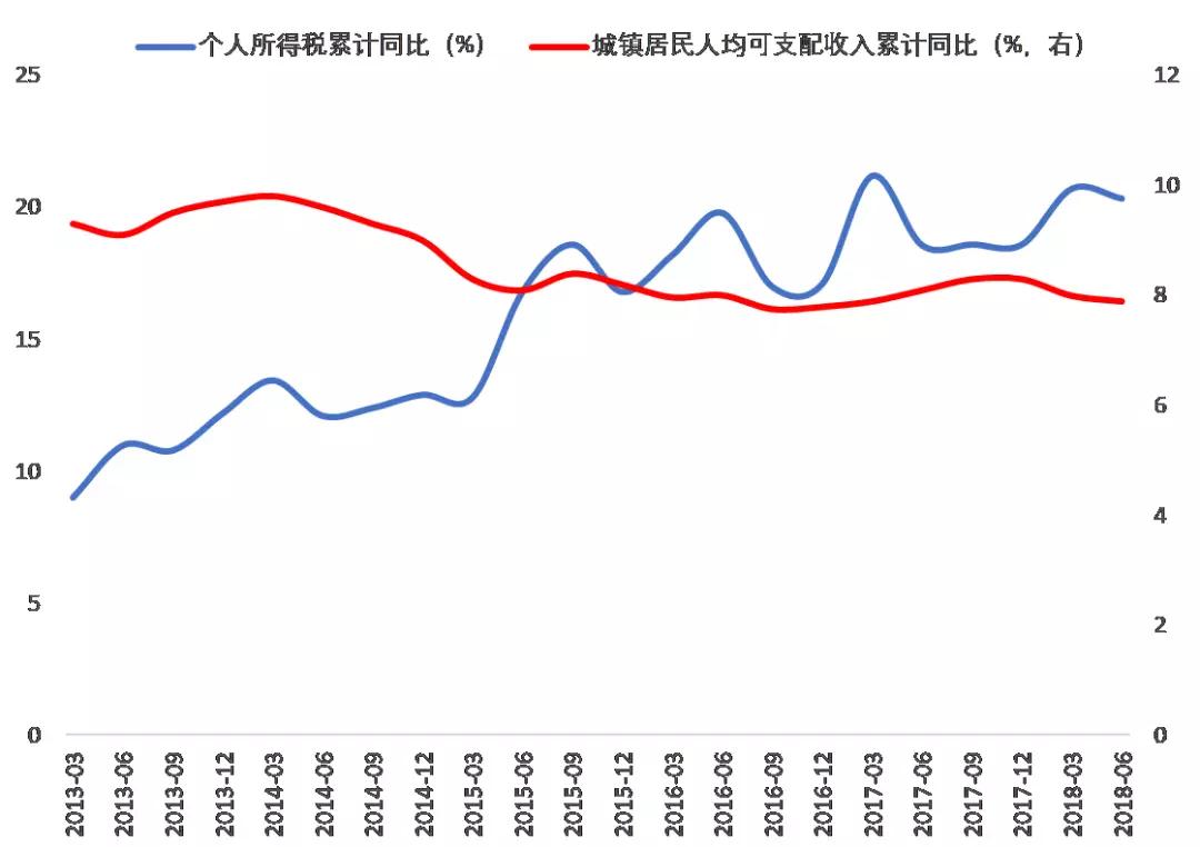 城镇居民人均可支配收入和个人所得税,都显示居民收入增速依然平稳。资料来源:国家统计局