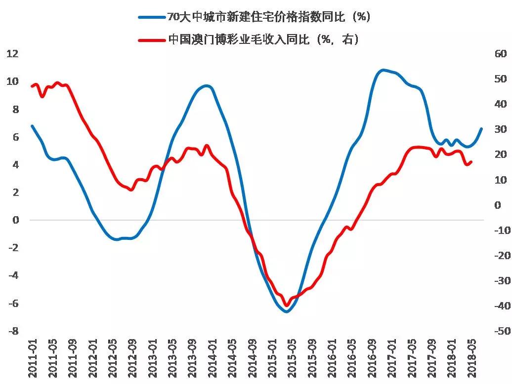 澳门博彩业收入情况与国内房价涨幅有很强同步性。资料来源:国家统计局、澳门统计暨普查局