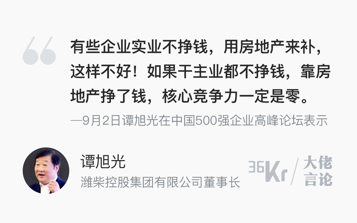 大佬言论 | 谭旭光:靠房地产挣钱的实体企业没有竞争力