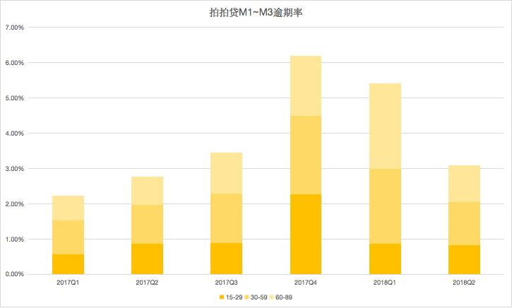 本季度,拍拍贷15~29、30~59、60~89逾期率分别为0.83%、1.21%、1.05%,逾期率获得持续好转,二季度这三类逾期率环比分别下降了0.04个百分点、0.9个百分点和1.38个百分点。