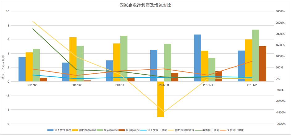 在刚刚过去的8月下旬,拍拍贷、乐信、趣店、宜人贷相继发布二季度财报,其中,乐信、趣店、宜人贷总营收同比涨幅分别为35.38%、124.7%、28%,净利同比涨幅分别为776%、42%、64%;最早发布财报的拍拍贷总营收同比下滑1.65%,净利同比下滑3.8%。