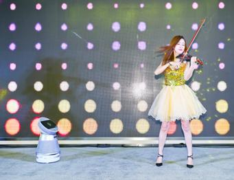 弗徕威机器人为电音小提琴手伴舞