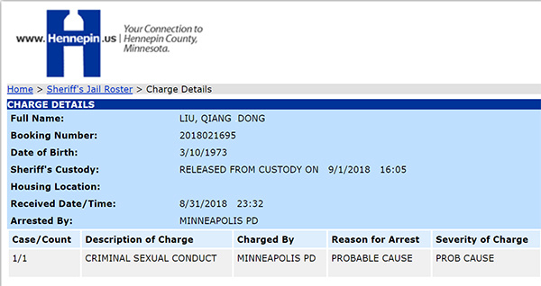 今天上午,刘强东“性侵风波”发展到一个高潮。据品玩援引美联社报道,亨尼平县监狱记录显示,因“涉嫌性犯罪”行为,45岁的刘某于周五23时32分被捕,并于周六16时05分被释放,等待可能的刑事指控。