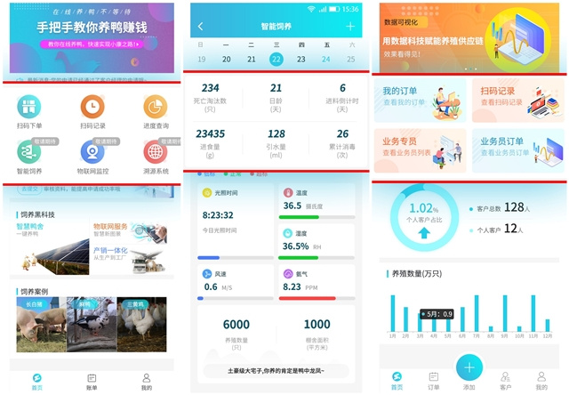 以上是舍羽农信落地的第一阶段,下一阶段,舍羽计划围绕养殖产业上下游,进行信息化、科技化改造,通过移动端APP实时监测养殖环境温度、湿度、光照、采食量、体重、死亡淘汰等数据,形成金融服务、环保技术升级、饲料采购、养殖生长、检验检疫、屠宰加工的养殖全周期大数据SaaS平台,确保养殖环节的全程可控及能效提升,进一步确保下游食品产业安全。
