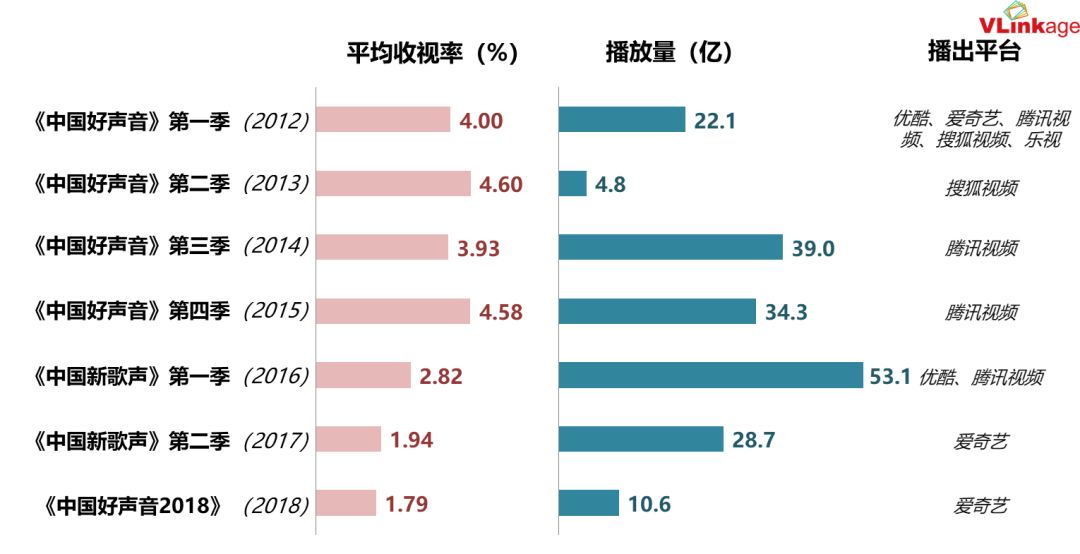Vlinkage数据显示,平均收视从2015年的4.58%,到2016年的2.82%,到2017年的1.94%,降至今年的1.79%。《中国好声音》连续3年收视下跌但仍处于今年头号交椅的背后,则是今年暑期档卫视综艺收视整体冷清。