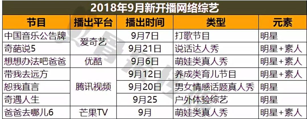 铁打的受众流水的综艺,在开学季的9月份,又将《奇葩说》第五季、《爸爸去哪儿》第六季等节目将上线,谁将突围而出,话娱将持续关注。
