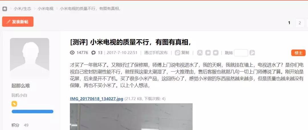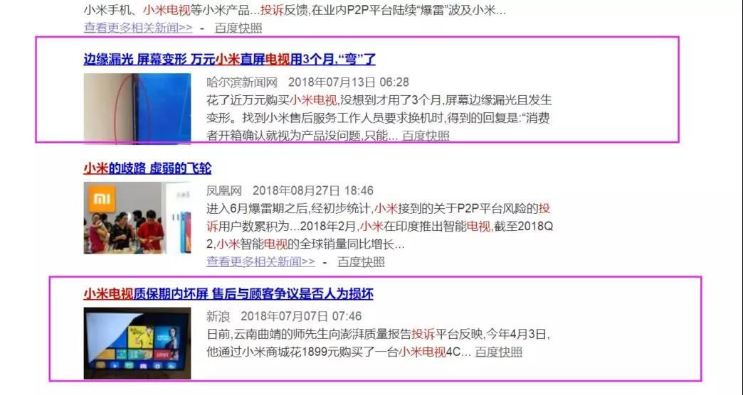 另外一方面,小米电视在依靠低价策略获得销量大幅增长的背后,其品控问题并没有因此减少。近年来,有关小米电视屏幕漏光、坏屏等质量问题屡遭消费者投诉。