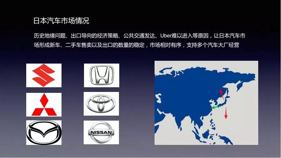我们也知道,日本一直抵制Uber进入它的市场,也是出于各种市场考虑。所以,因为地缘问题,出口导向的经济策略、公共交通发达,Uber难以进入等原因,让日本汽车市场形成新车、二手车售卖以及出口的数量稳定,市场相对有序,支持了多个汽车大厂的经营。