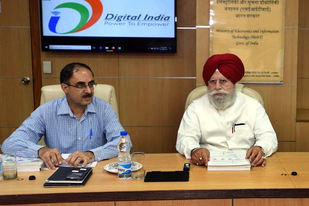 印度信息技术部长 Ajay Sawhney (左)说,政府在制定关于技术产业的严格新规定时保持着开放的态度。Sonu Mehta/Hindustan Times,图片来源:视觉中国