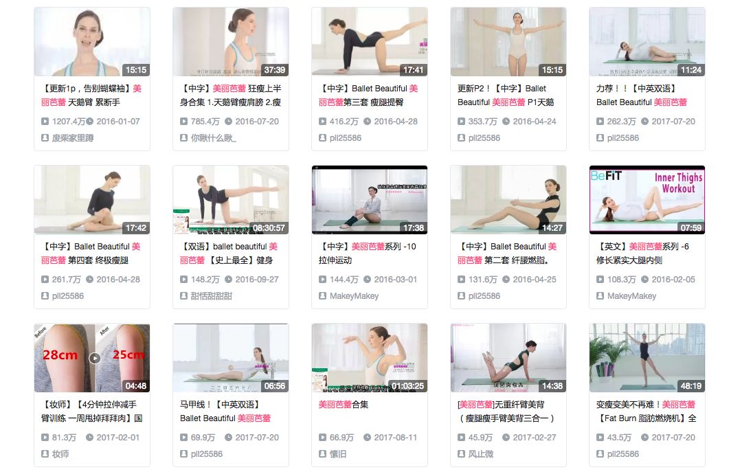在B站的减肥视频中,美丽芭蕾课程单个视频浏览量超过千万,位列第一,来自95后瘦身女生的表白弹幕,几乎霸屏。