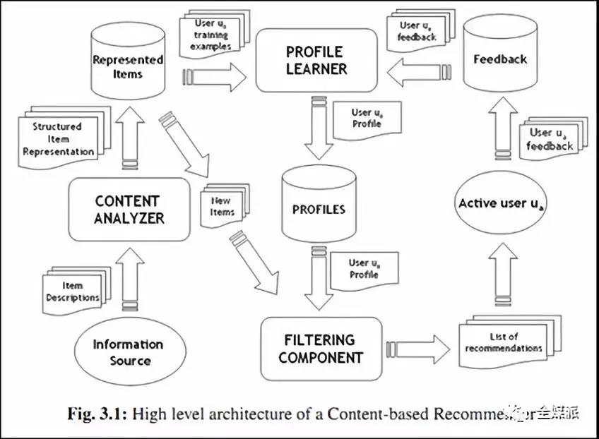 基于内容的推荐算法(content-based)特别适用对文本内容的解析。将一则文本视为一条item,通过不断地抽取、细化,为文本打上无数的标签,形成taglist。当用户在做个性化推荐时,可以将用户最近操作过的item列出,用这些taglist模拟成一个用户模型,再用倒搜索引擎为用户推荐候选结果。在国内,采取CB算法的最典型代表就是今日头条。