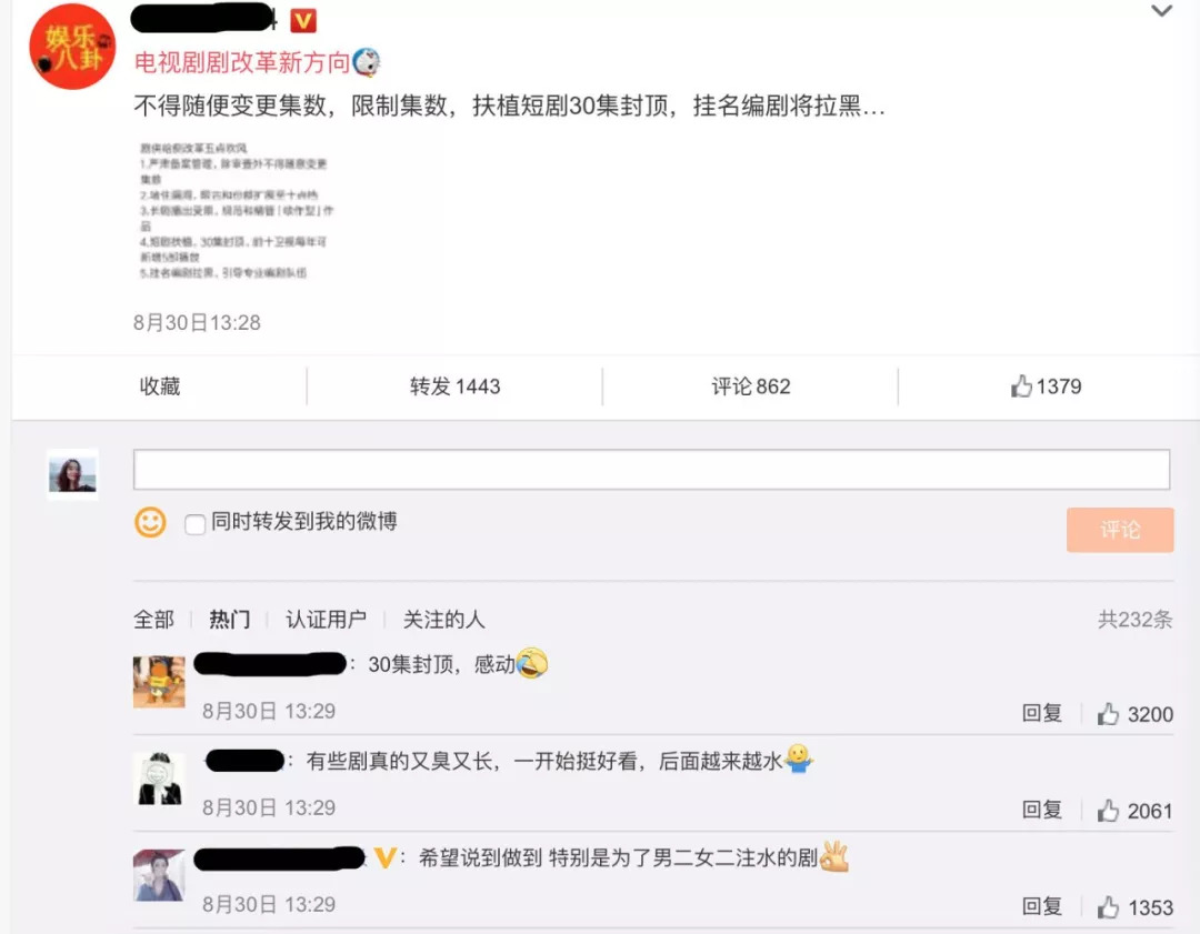上周,微博曝出一张“剧供给侧改革五点吹风”的图,其中明确指出不得随意变更集数、扶持短剧30集封顶、挂名编剧拉黑。虽暂未有正式文件,但从评论可看出民心所向。