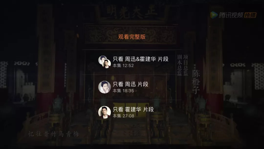 该功能将每一集几位主演的戏份集结成片段,用户可自主选择只观看与某位演员相关的部分,适用于粉丝。