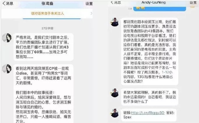 以《香蜜》为例,剧情播放过半时,其就因编剧与制片人对剧本内容删改说辞不一,频上热搜。编剧张鸢盎称起初合同约定为36集剧本,最终他们提交了43集,但最后成片有63集之多,有另一编剧团队删改了内容。制片人刘宁却回应称没有“阴阳剧本”之说,加入其他编剧团队是因张鸢盎团队写得太差。