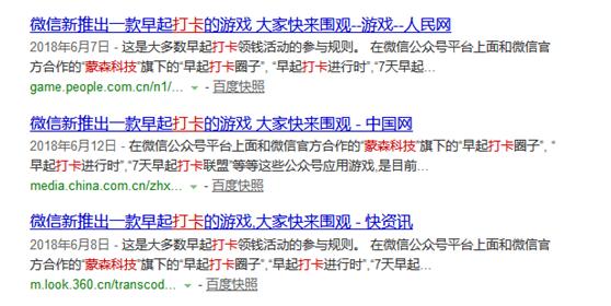 在起步阶段,各个打卡公众号运营者都在疯狂推广,通过媒体进行狂轰滥炸的报道是宣传的常用套路。某公司推广其多个打卡平台时,甚至在一些知名媒体进行了投放,但现在这些公众号平台都已经无法被搜索到。