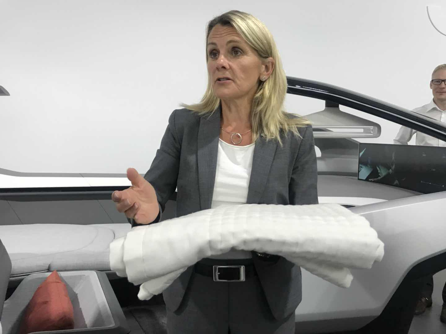 小小的睡毯则别有设计——“安全”一直是沃尔沃主打的概念,而这个睡毯正是在自动驾驶过程中的一个安全设置。根据沃尔沃工作人员的介绍,在休息时,人们将睡毯盖在身上的同时,将把睡毯的边缘固定在座位上,一旦发生碰撞,睡毯将瞬间自动拉紧,起到安全带固定的作用。