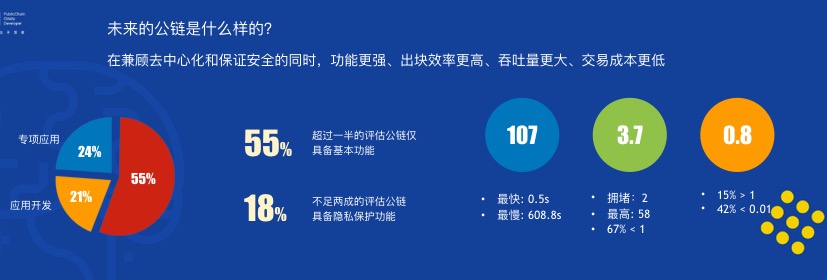 在我们当前评估里面,只有不到 50% 的公有链是可以支撑开发其他应用,只有两成的公有链支撑图灵完备的智能合约。
