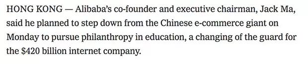 马云被「安排」周一退休,《纽约时报》把全球媒体都耍了一通