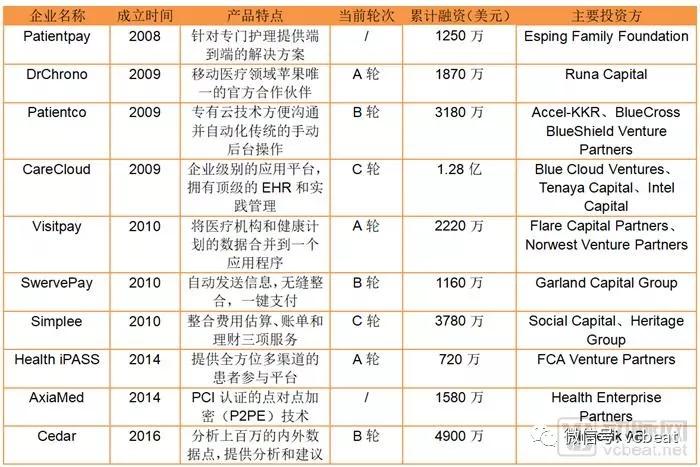 成立时间最晚的Cedar有望成为移动医疗领域新兴的竞争者,旗下的产品包括针对患者的金融管理平台以及针对医疗机构的客户关系管理系统。