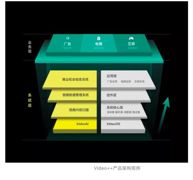 如上图所示,Video++极链科技搭建的AI场景营销平台ASMP,底层包含了点播互动系统Video OS(2015年7月上线)、视频智能投放系统Video AI(2015年10月上线)等技术。Video AI主要用于视频内容结构化,目前支持人脸、地标、明星等8大内容结构化,且可以同步生成轨迹流;Video OS则主要用于广告实现,包含了投票、卡牌搜集、同款识别、智能推荐等功能,使用户无需跳转即可以实现转化。
