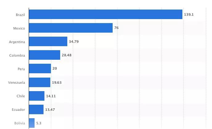 因为地理位置的接近,拉美互联网仍然以美国公司为主。亚马逊、Facebook、Goggle、Twitter等在拉美国家拥有巨大的用户群体。YouTube 等内容平台也颇受欢迎。