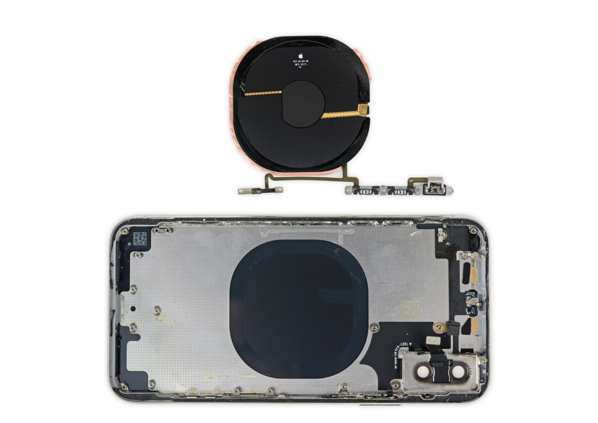 ▲ iPhone X 内的无线充电线圈. 图片来自:iFixit