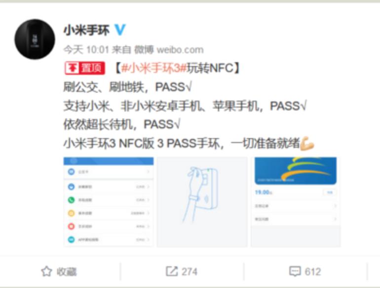 小米手环3分为普通版和NFC版,其中普通版已经于6月上架官方商城,售价为169元。而今天上午,小米手环官方微博预热小米手环3 NFC版即将与大家见面,NFC版内置了NFC芯片,可以充当城市公交一卡通,也支持公交账户充值支付,乘车、乘地铁只需要刷一下手环就行了,非常方便。小米手环3 NFC交通功能陆续开通城市:北京、上海、广州、深圳、武汉、天津、石家庄、苏州、合肥、西安、吉林等167座城市。