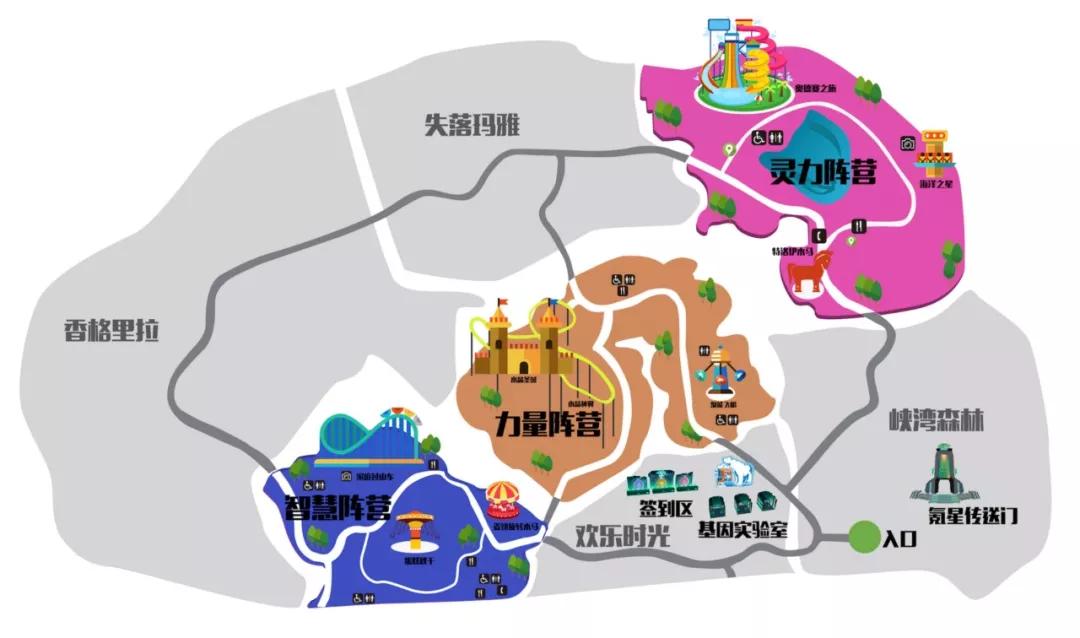 在「没想到游乐园」内,我们将北京欢乐谷划分出了三大阵营,分为力量阵营、灵力阵营和智慧阵营。