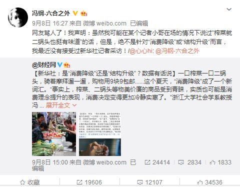 稍显尴尬的是,冯钢教授很快在自己的微博上回应,自己没有接受过采访,更没有说过这句话。